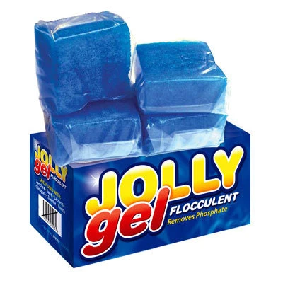 Jolly Gel comes in packs of 4 x 70g cubes and each cube will clarify 60m3 (12,500 gallons) for up to 21 days