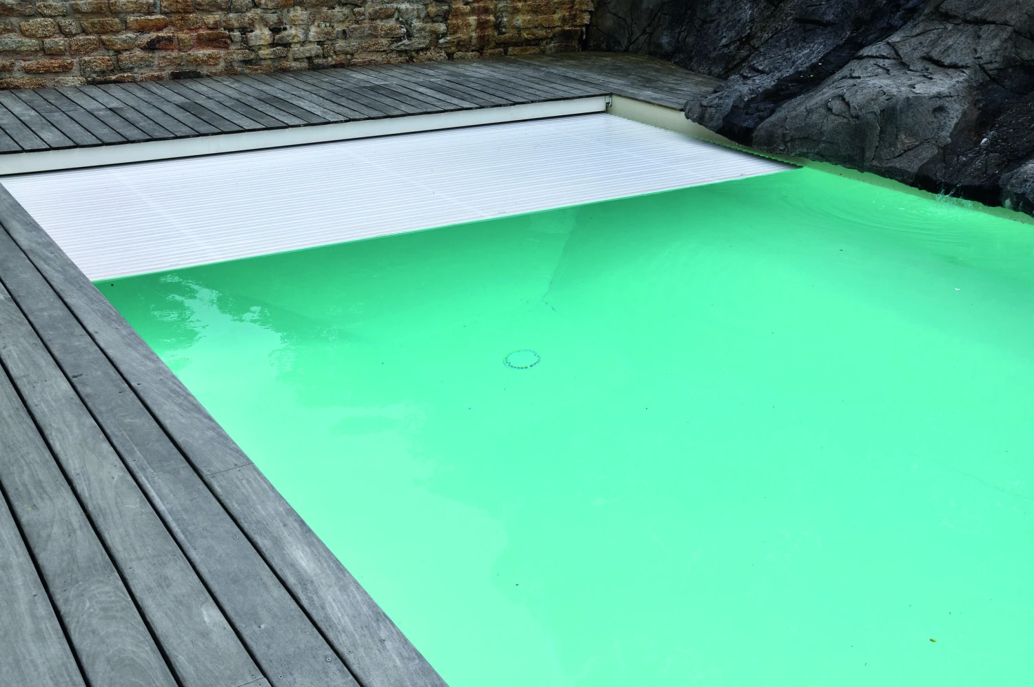 - Automatic pool cover hidden behind a separating wall